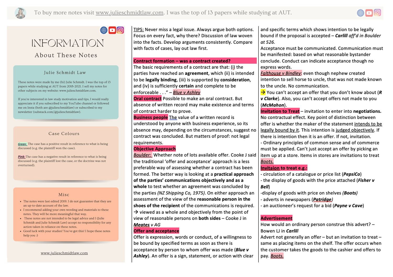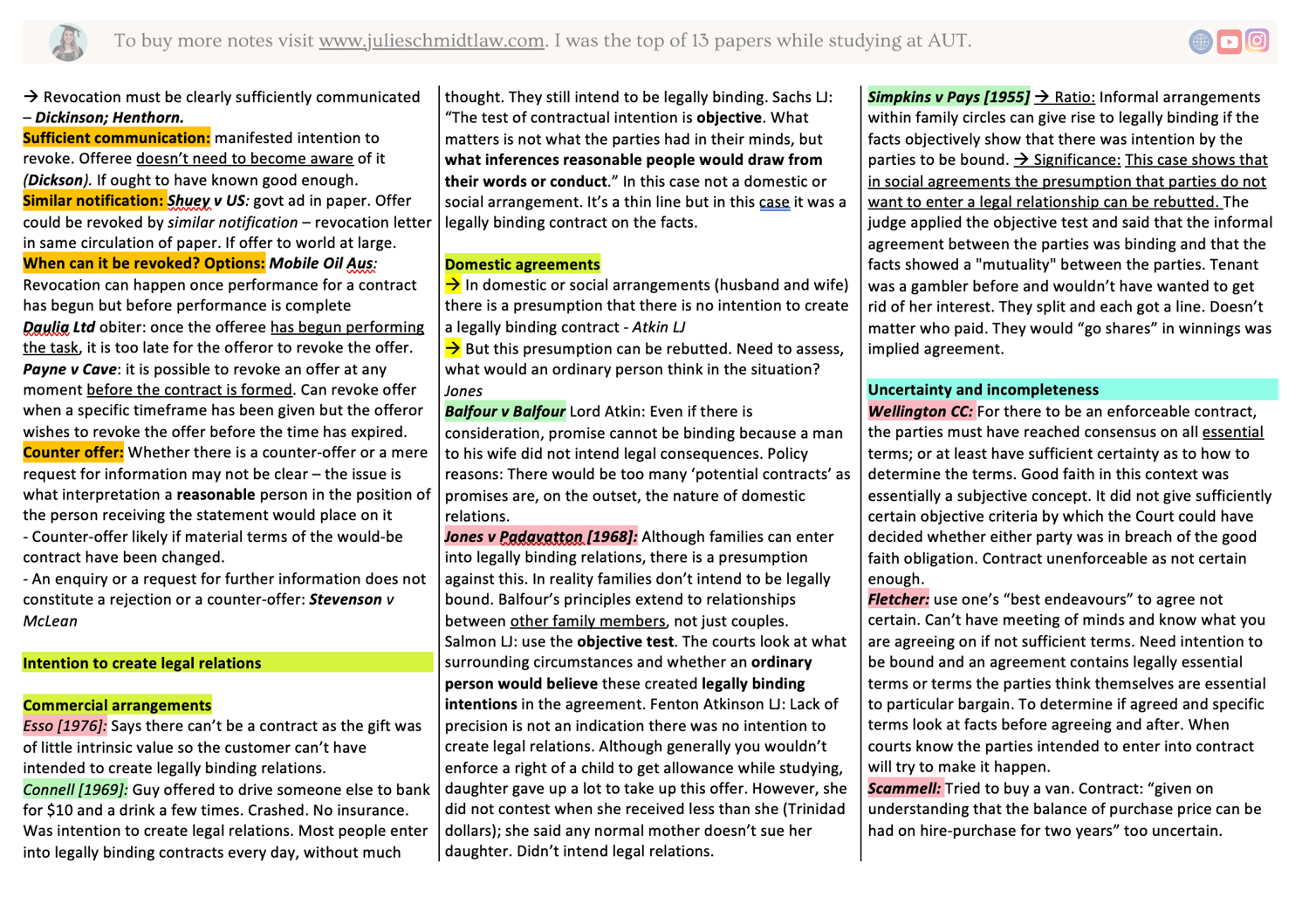 š„ I was theĀ top studentĀ in Contract at AUT thanks to my incredibly comprehensive notes.