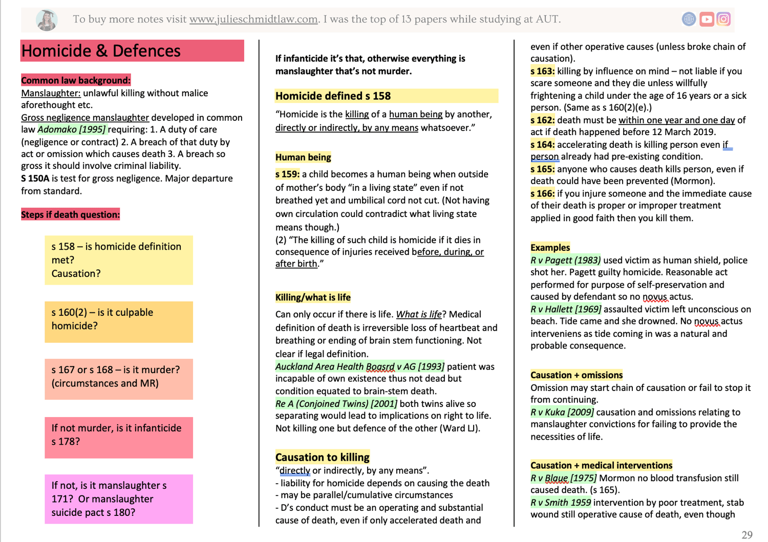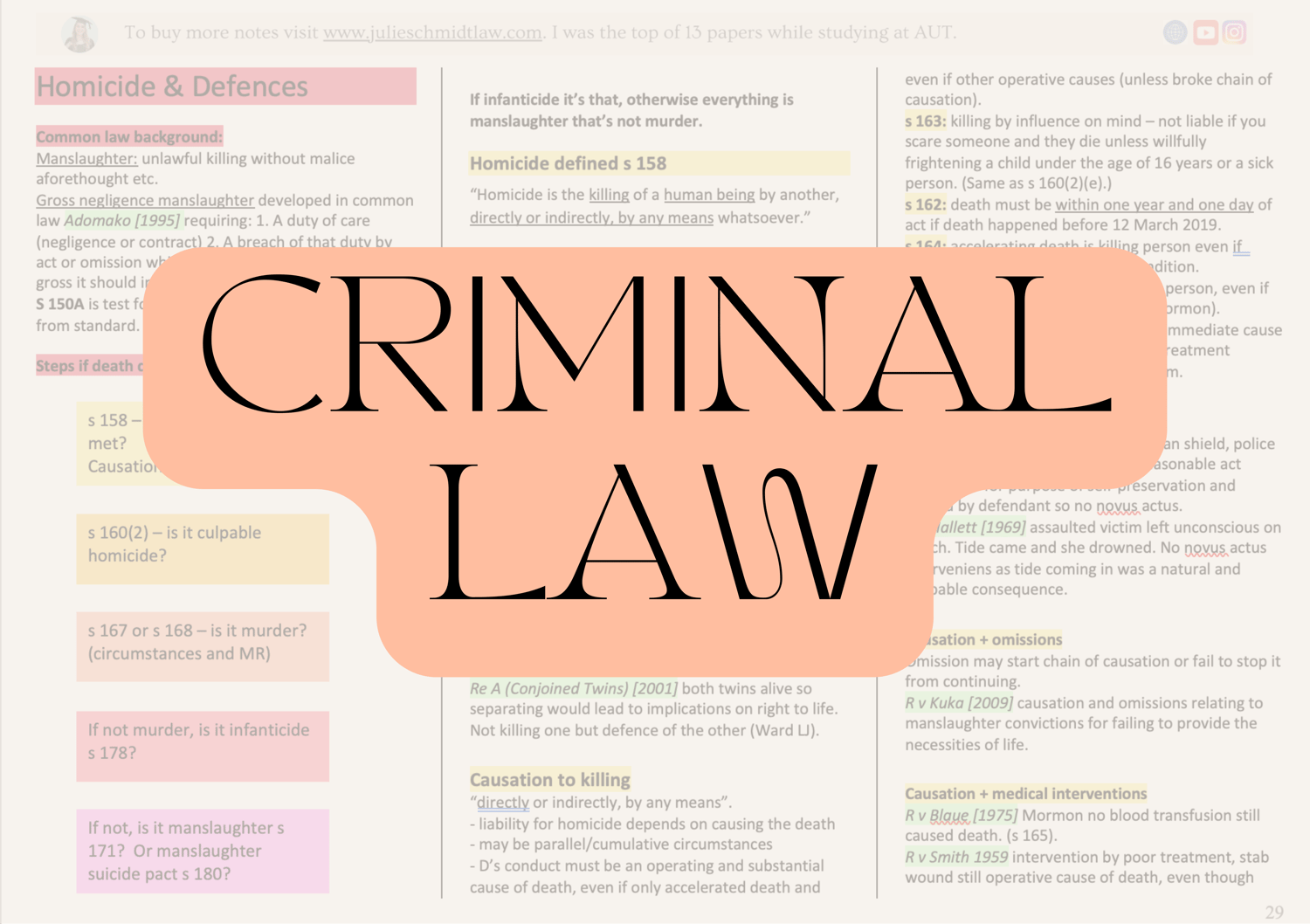My incredible 35-page criminal law school notes reference an extensive number of cases, textbooks and articles.