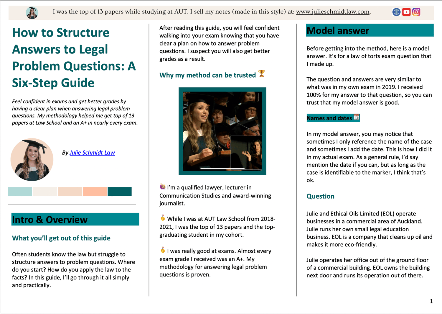 🎉 I’m super excited to announce that my new guide is now live! ☝🏼➡️ For the first time ever, I publicly share a model answer to a legal problem question. The guide then breaks down this model answer and explains how to write it in six simple steps.He...